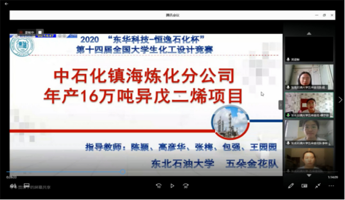 本次竞赛以线上形式进行,东北赛区共有34所高校的111支队伍成功报名参赛,经过评审专家网络评审,32支优秀代表队脱颖而出,进入东北赛区决赛及全国总决赛的选拔赛。经过本次大赛现场评审专家专项评审、两轮现场答辩,最终,大连理工大学“起早碳黑”团队、辽宁石油化工大学“啸风”团队、哈尔滨工程大学“N95”团队、齐齐哈尔大学“戊有所值”团队、伟德国际1946“五朵金花”团队、沈阳化工大学“Miracle”团队和吉林化工学院”碳五联盟“团队等7个团队代表东北赛区成功进入全国总决赛。