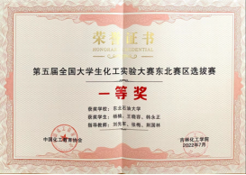 2022年7月1日至4日,由教育部高等学校化工类专业教学指导委员会、中国化工教育协会主办,吉林化工学院承办的第五届全国大学生化工实验大赛东北赛区选拔赛,在吉林市成功举办,来自东北地区的34支队伍参加比赛。我院化工专业学生杨楠,王晓容,韩永正组成参赛团队,在刘先军,张梅等老师的指导下,经过激烈角逐,荣获全国大学生化工实验大赛东北赛区一等奖。此次比赛我院共取得赛区一等奖1项,三等奖1项;省赛特等奖1项,一等奖1项,三等奖2项,优秀奖6项。