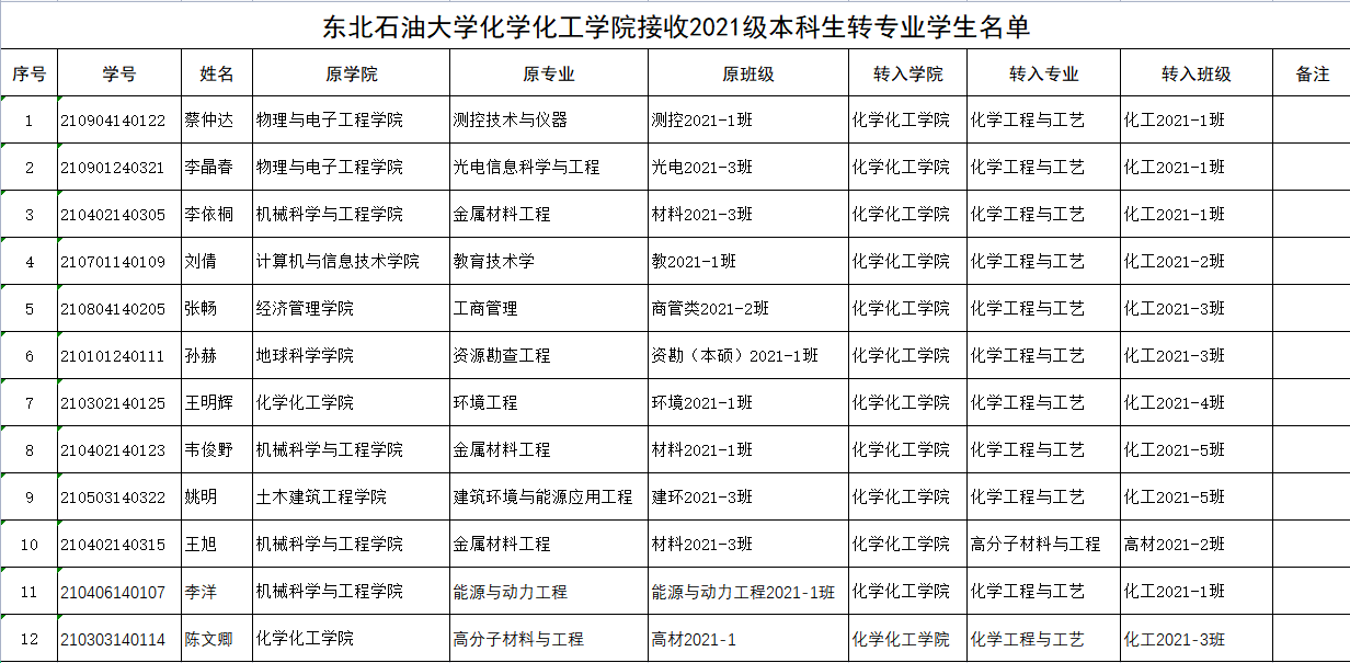按照学校教务处对2021级本科生转专业工作通知要求,经学院审核,对符合要求的学生予以公示。公示时间:2022年2月28日-2022年3月2日,公示期间如有疑问请联系化工院教学办公室李老师,联系电话:6504511。